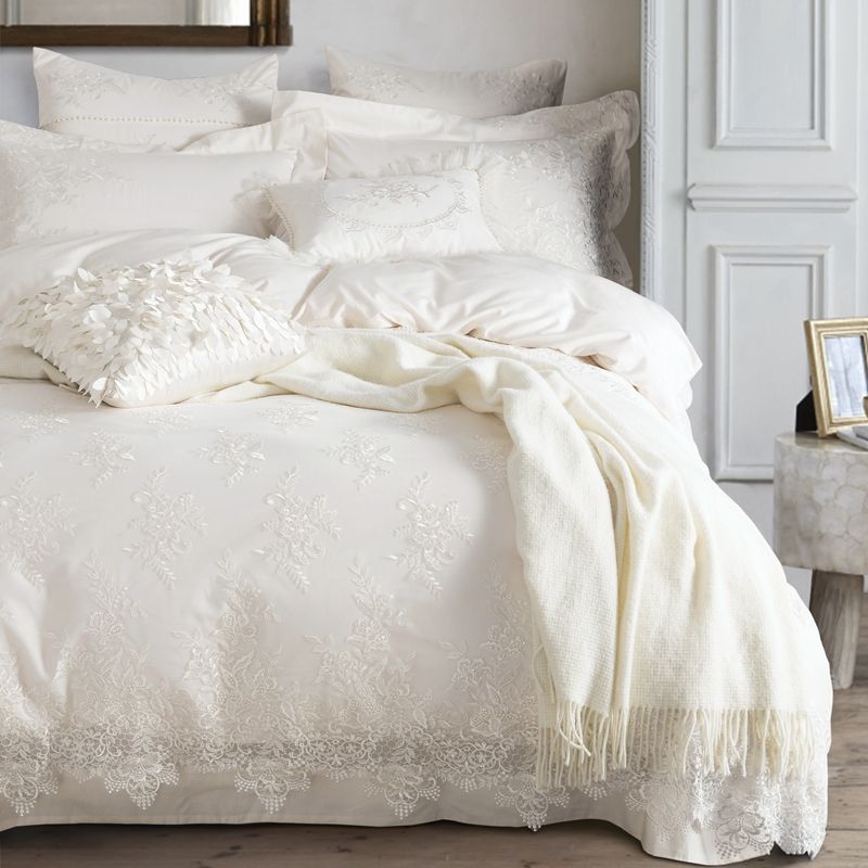 Wedding Bedding set 4 Pieces cotton duvet cover bed sheet 2 Funda Nordica Bedding Sets Levin Velvet, Crystal 4pcs / Set Paris white Lace Egyptian Cotton Duvet Cover Set | Duvet cover